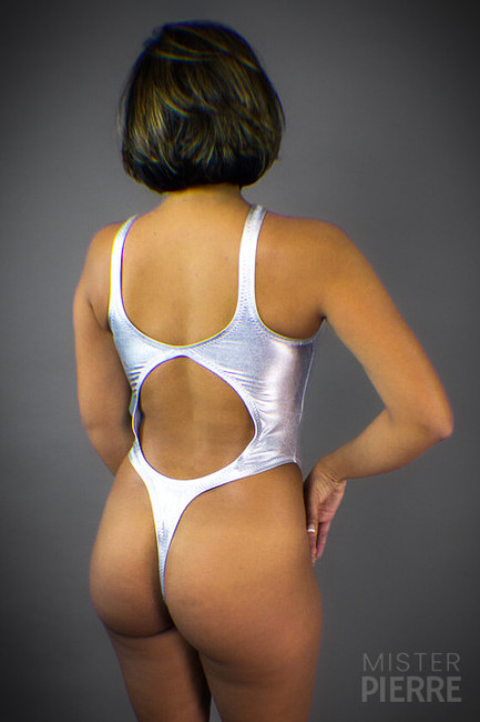 Deep cut in front with a stunning Keyhole back design and the high waist French cut waist make for a revealing and sexy bodysuit or swimsuit.